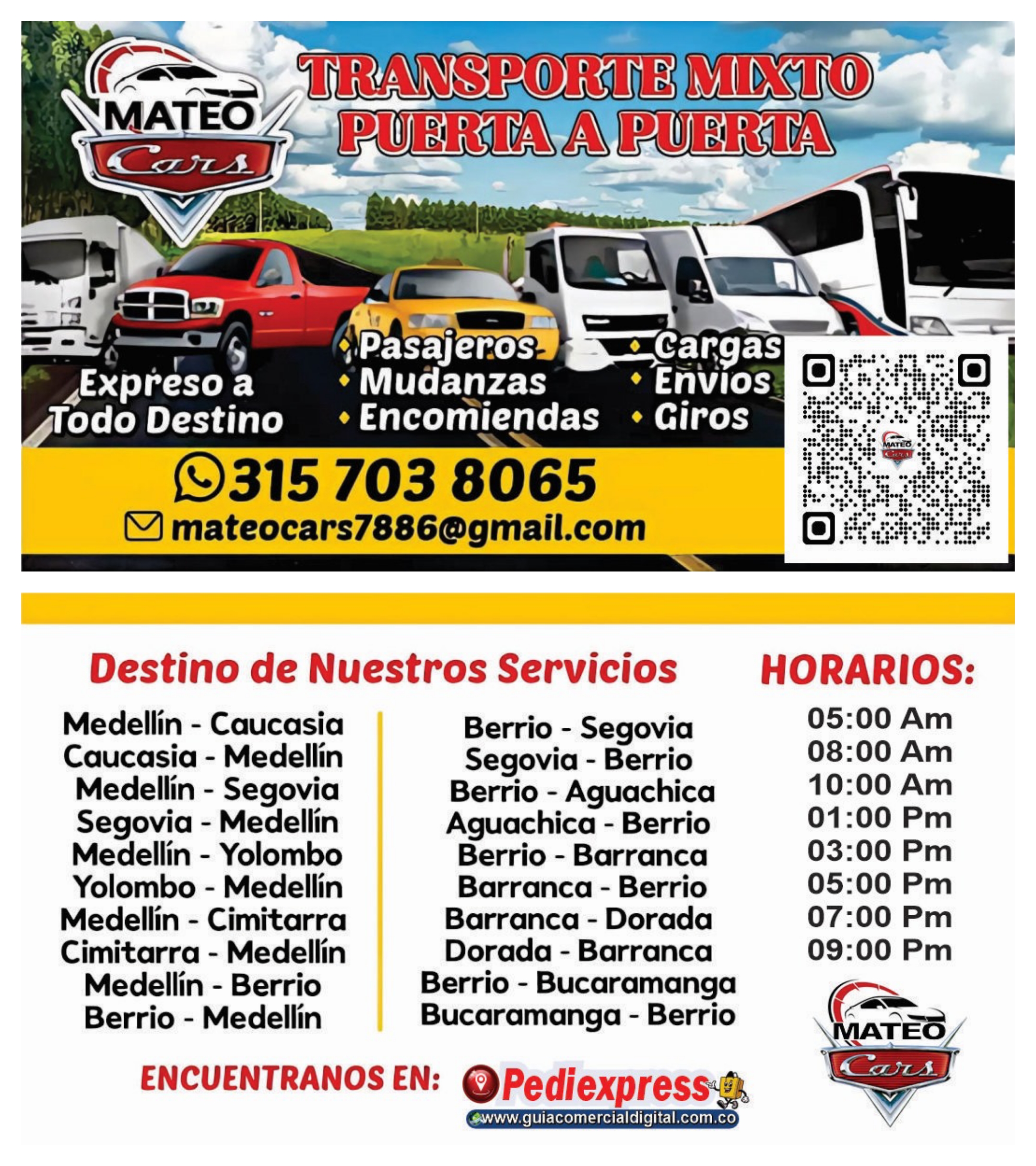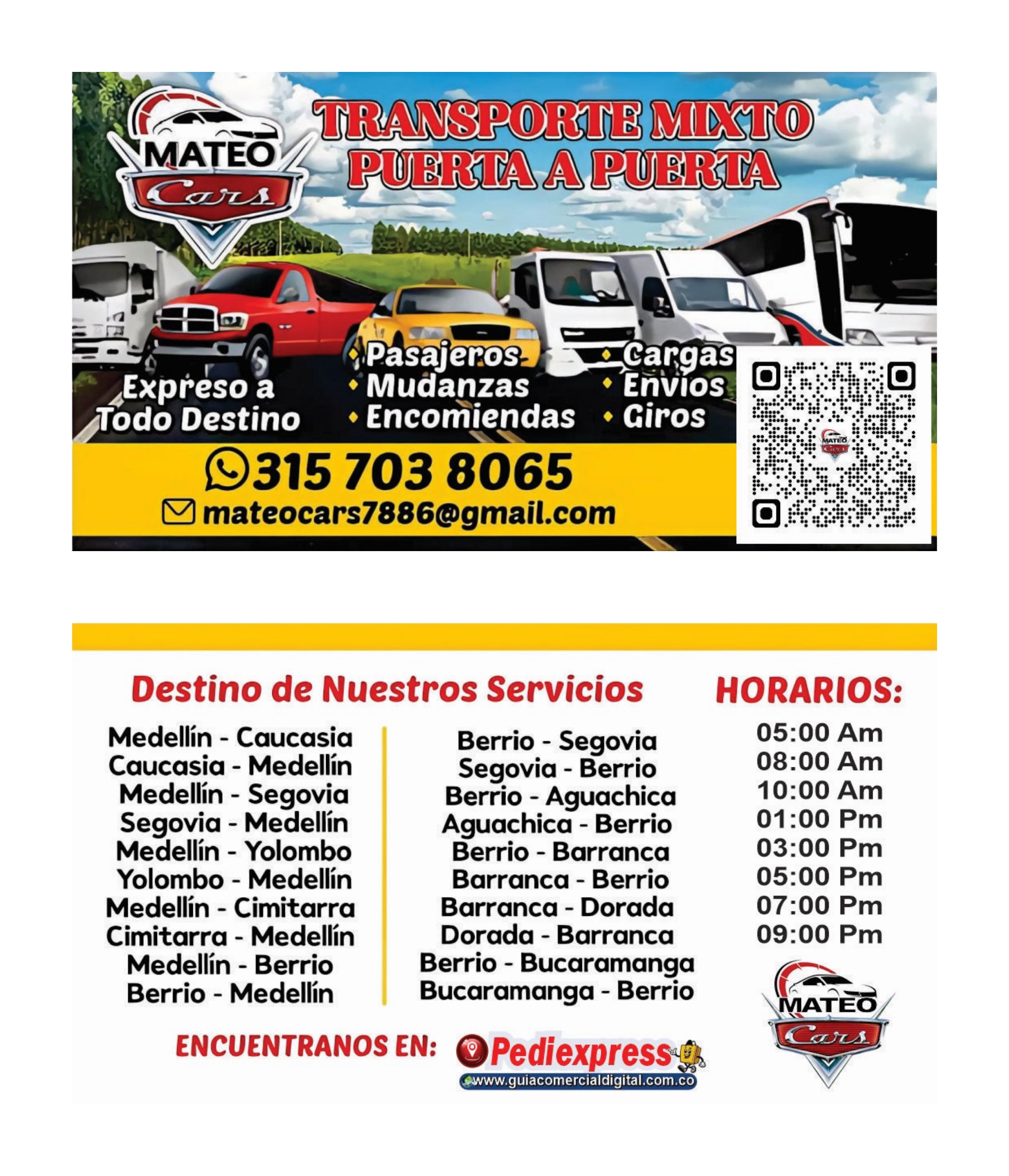 - TRANSPORTE MIXTO PUERTA A PUERTA En Camioneta 🛻, Automóvil 🚘, Furgón 🚛, Turbo 🚚, Bus 🚌 Y Buseta 🚐 .
